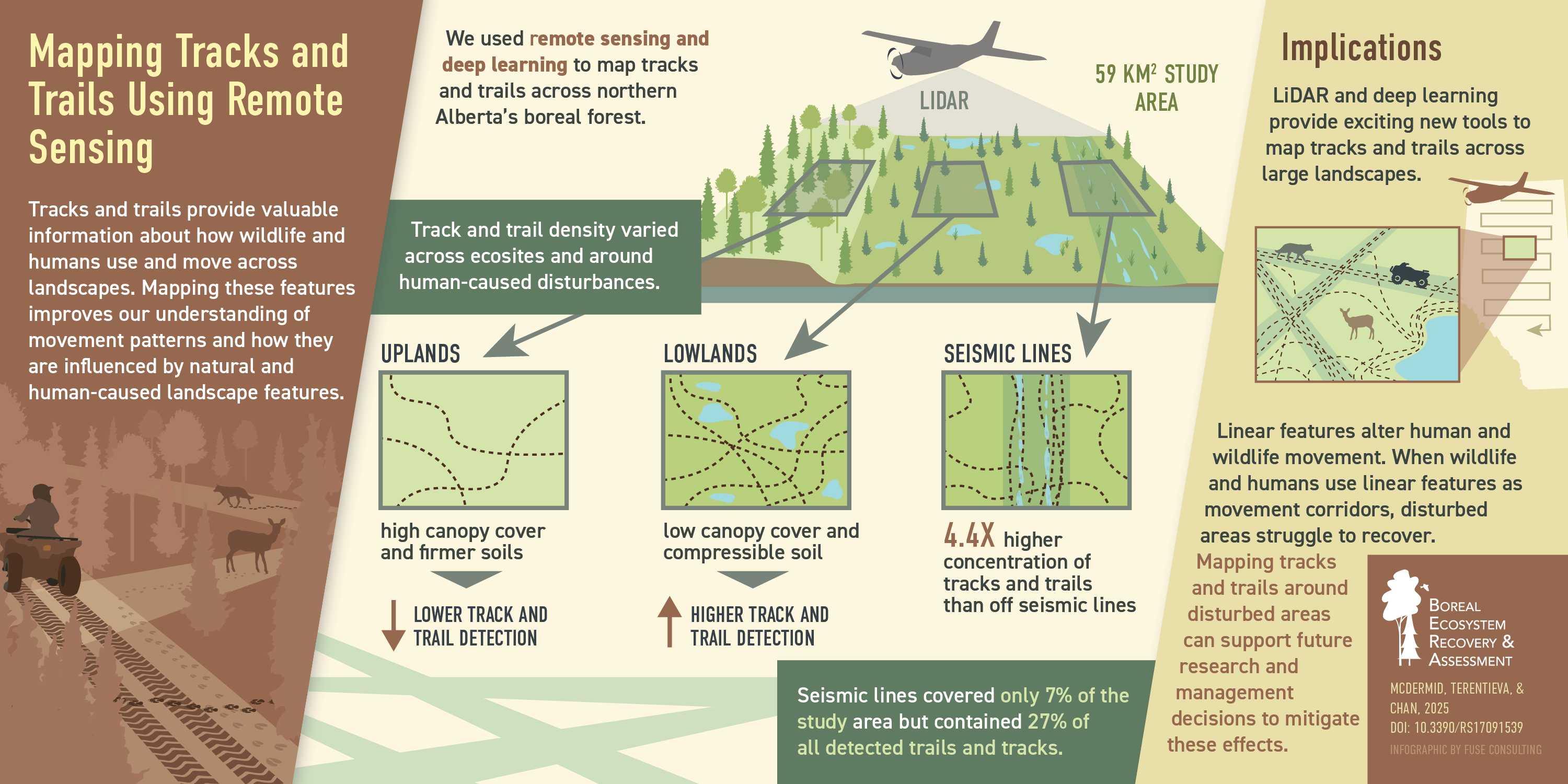 Alberta’s legacy seismic lines need restoration actions, but the sheer volume of lines on the landscape is daunting. Part of the challenge involves distinguishing lines that require active treatments from those that can be left for natural. Wildfires are the dominant disturbance agent in the boreal forest and can be an effective promoter of natural restoration in the right situations.